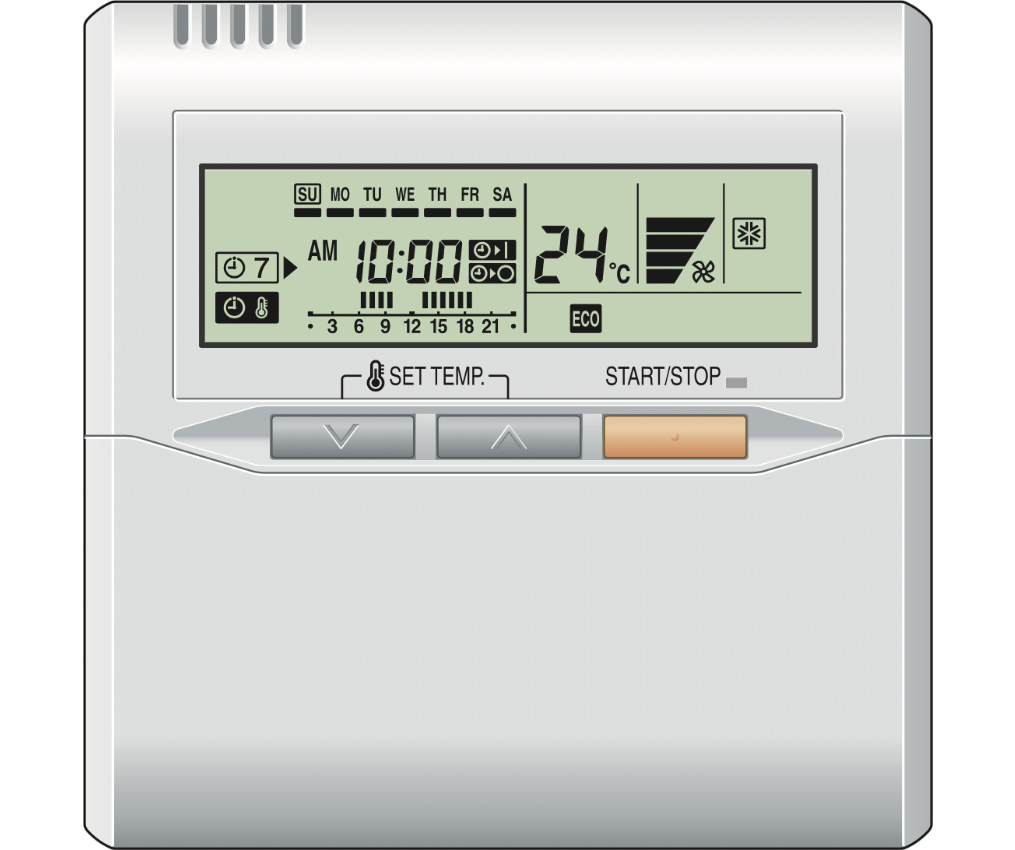 Классический пульт. Управление группой до 16 внутренних блоков (кроме настенных блоков). 3-проводной