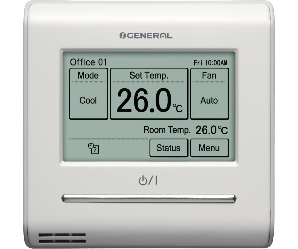 Сенсорная панель с высоким разрешением. Управление группой до 16 внутренних блоков (кроме настенных блоков). Недельный таймер. 2-проводной