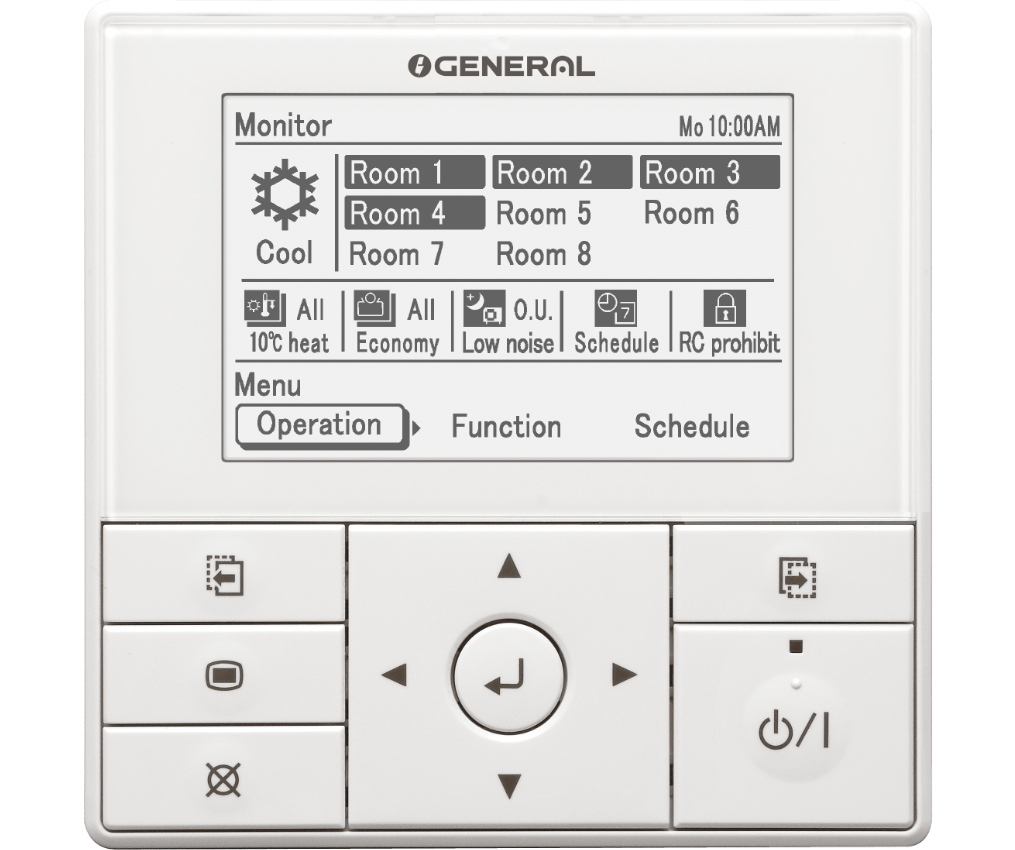 Для мультисплит-систем на 6 и 8 внутренних блоков. Позволяет группировать основные настройки и блокировать индивидульные пульты ДУ внутренних блоков